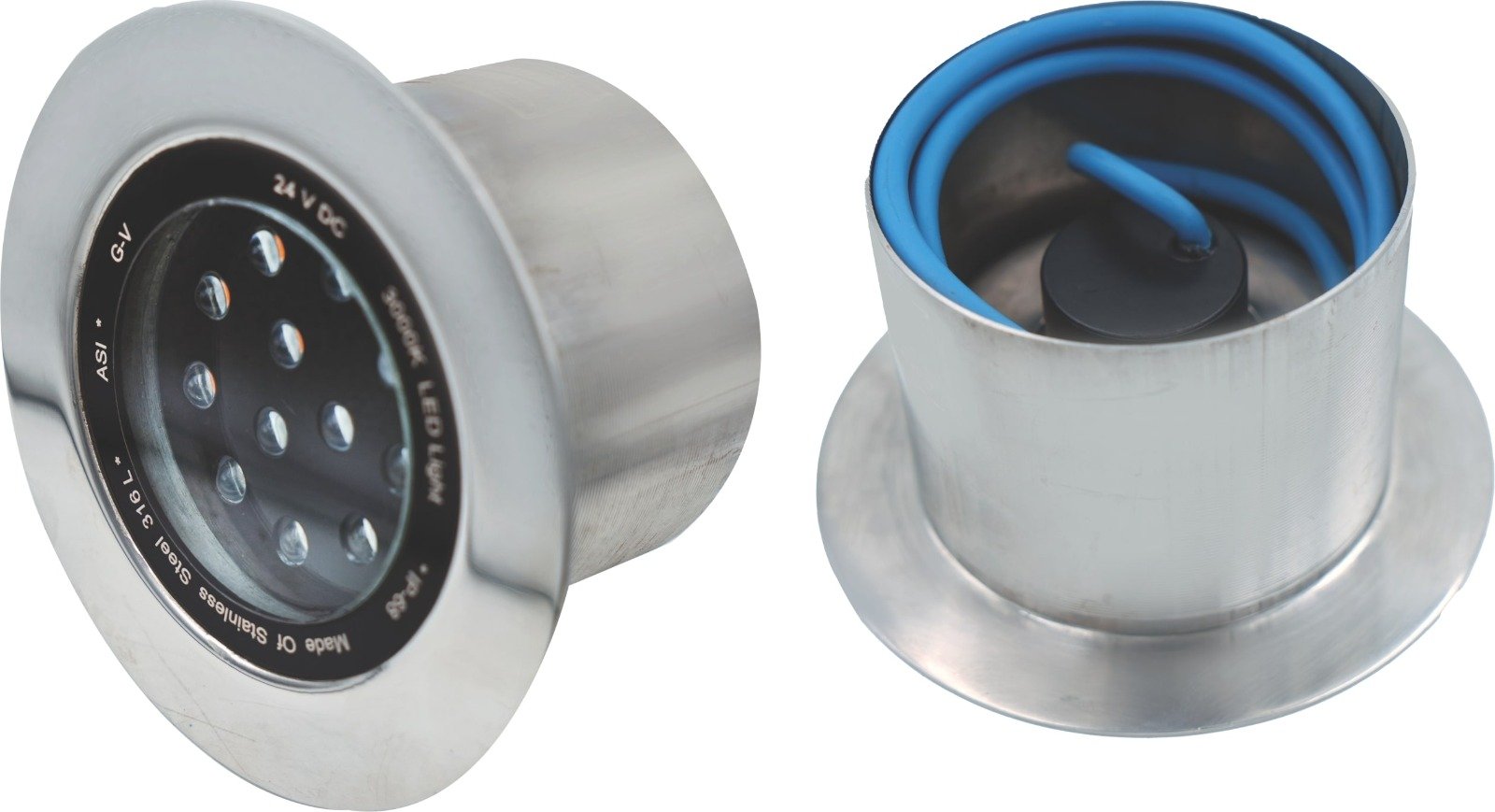 High-performance 27W Ground Burial light designed for powerful outdoor illumination. Operating on 12–24V DC, it features durable SS 316 construction with IP68 protection and a glass cover for enhanced durability. With a 60° beam angle and robust design (OD172xC120xH70mm), it ensures reliable lighting. Available in WW and RGB options.