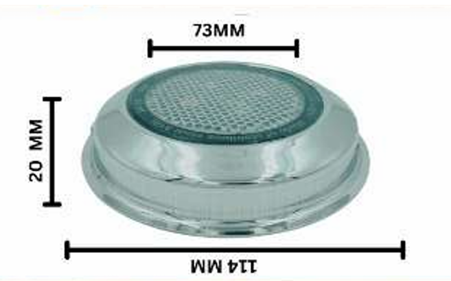 The **4-Inch Surface Slim Edition** is a **wall-mounted swimming pool light** designed for **fountains and pools**. It features a **9W SMD LED** with a **warm white (3000K) color temperature** and operates on **12V DC**. With an **IP68 waterproof rating**, it withstands temperatures from **-20°C to +50°C**. Made from **stainless steel 316L**, it has a **PC cover** and a **brushed chrome finish**. It offers **adjustable light angles (25°-45°-60°-90°-120°)** and ensures **constant voltage operation** for long-lasting performance.